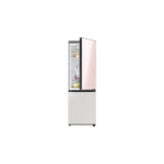 The Glam Pink and Glam White BESPOKE design makes this refrigerator a statement piece for any kitchen. Its recessed handle and compact dimensions make it both elegant and practical for small spaces.