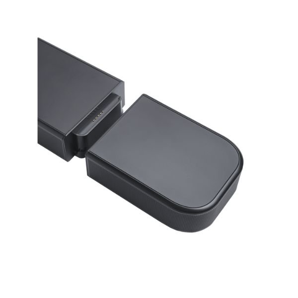 Each of the detachable surround speakers weighs only about 0.7 kg, making them easy to pick up and move. The soundbar itself weighs around 5 kg, while the subwoofer is about 8.1 kg. The detachable speakers can run on battery for up to 10 hours, giving you flexibility to use them even when you’re away from your TV.