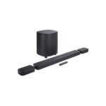 JBL’s MultiBeam 3.0 technology ensures that sound is distributed broadly across your room. This helps prevent “sweet spot” issues — you don’t need to sit in precisely one place to appreciate good surround; the soundstage is designed to reach you even if you’re off-centre.